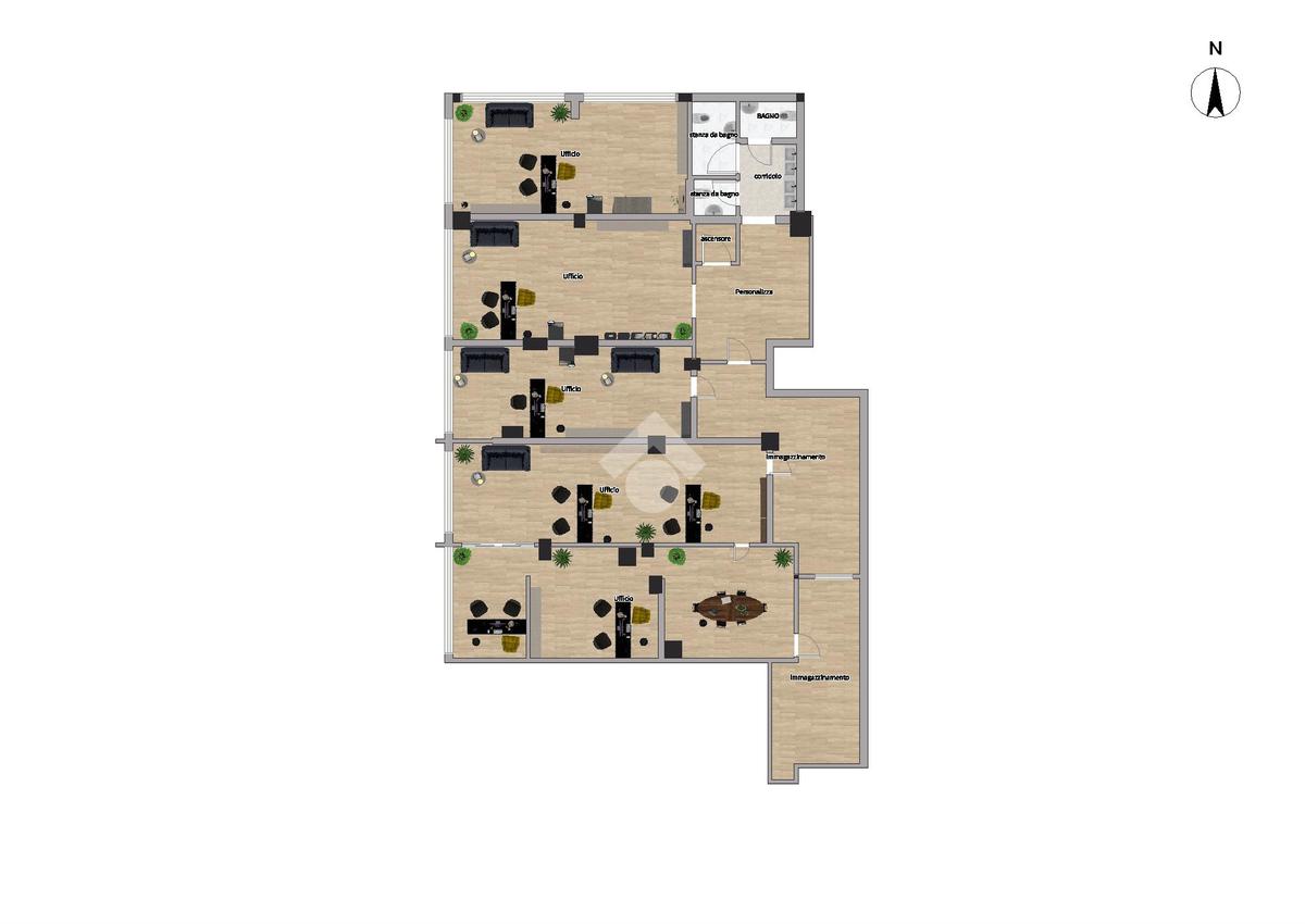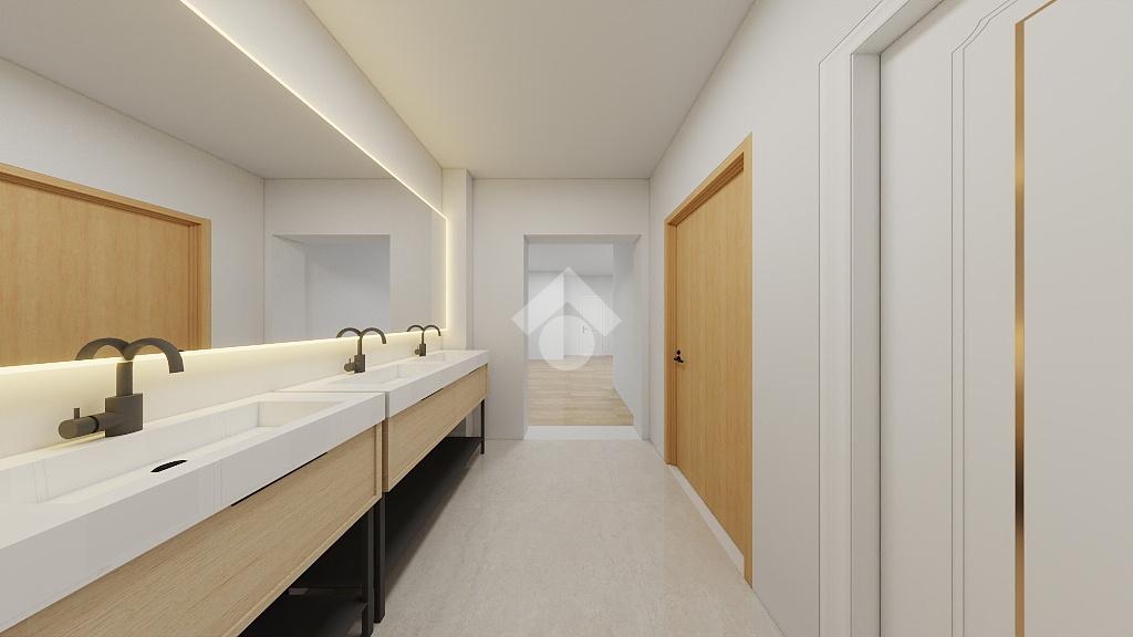 Piano terra composto da ampio open space controsoffittato, ideale per qualsiasi attività commerciale e/o espositiva, attività creative, disimpegno, locale archivio e servizi.